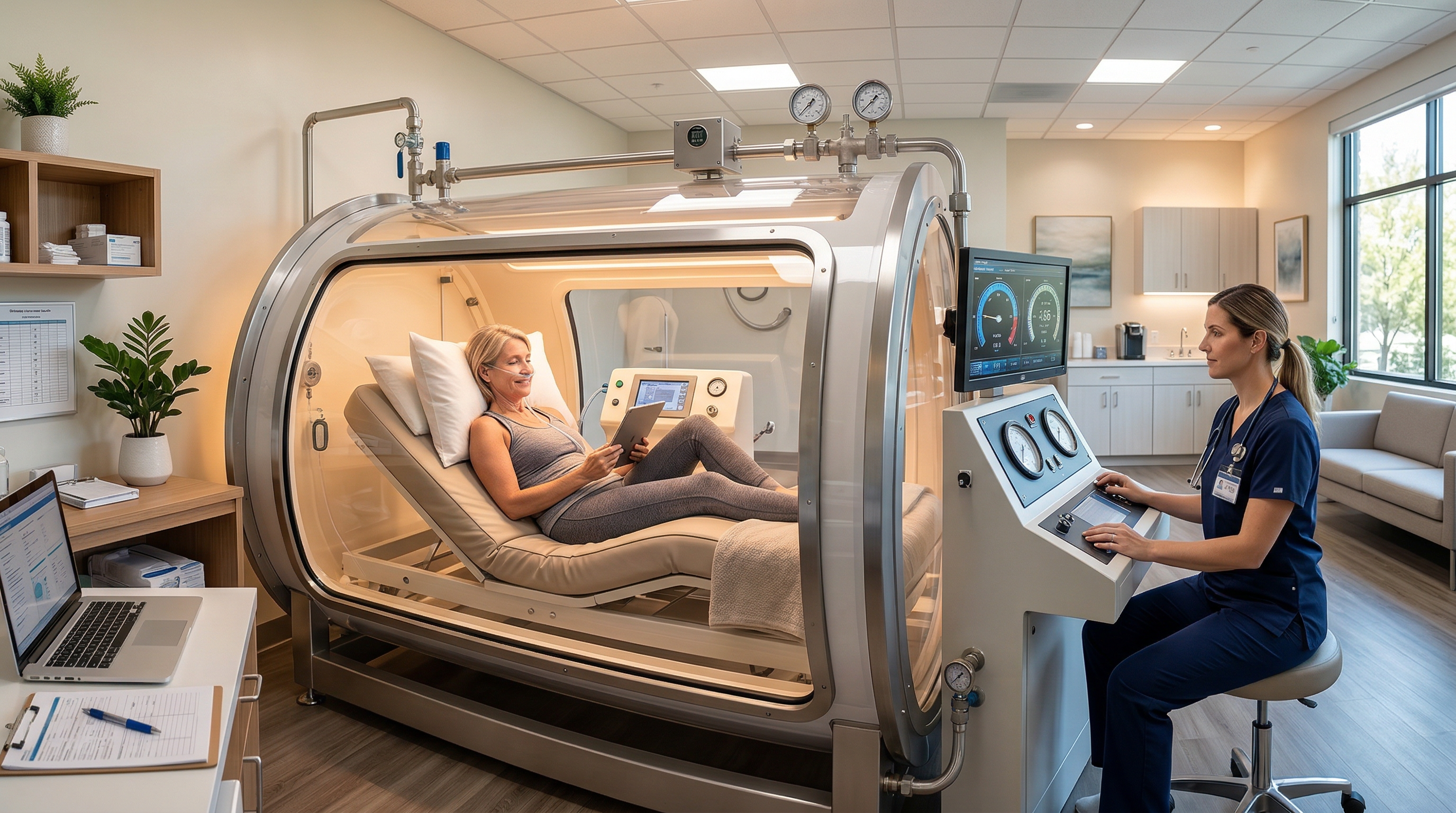 Our clinical team monitors your entire 45-minute session from start to finish. We track your response and adjust pressure settings as needed. You are never left unattended inside the chamber.