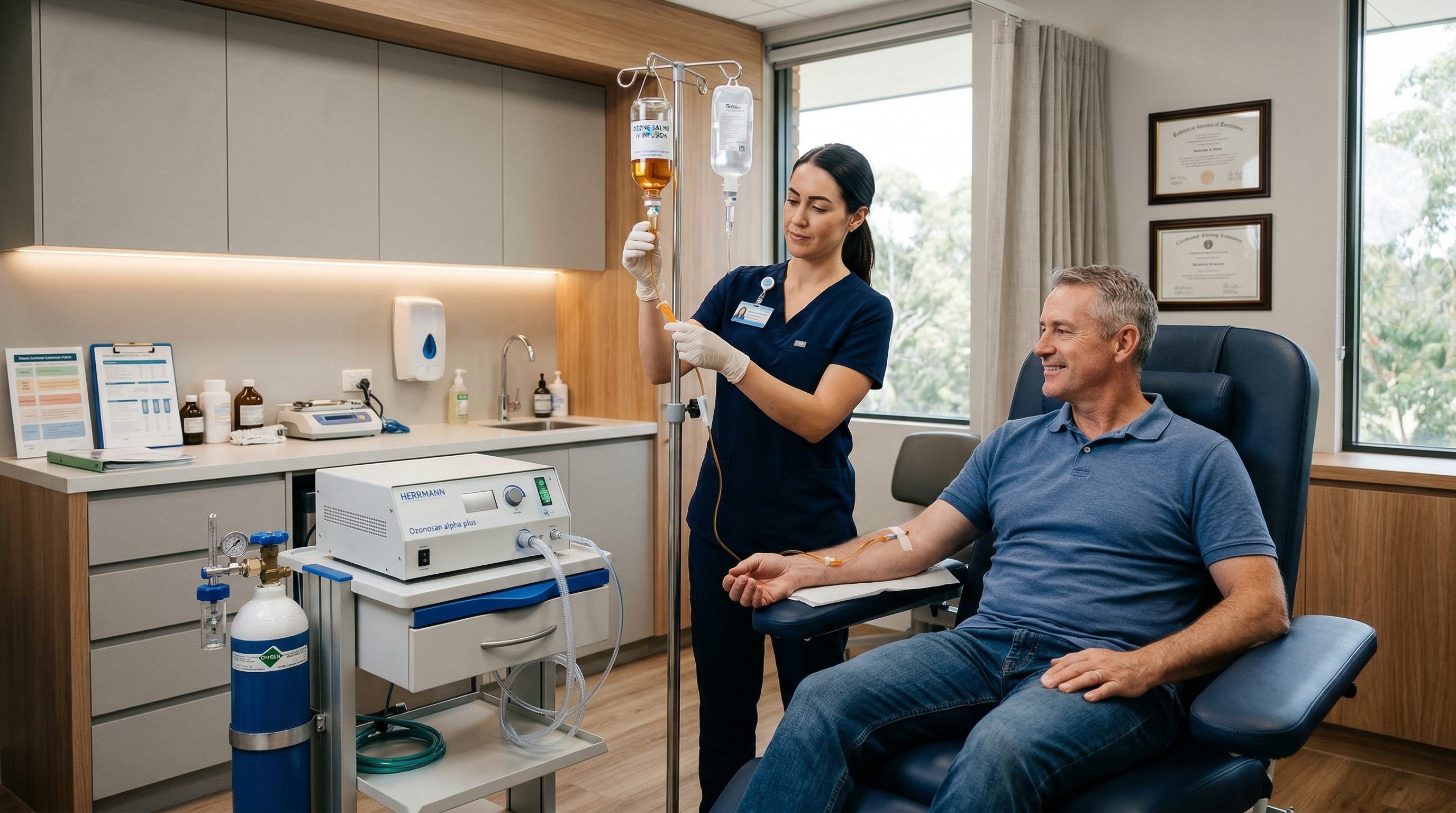 Your blood is mixed with medical-grade ozone at a precise concentration. The ozonated blood is then reintroduced intravenously. This process takes 30 to 60 minutes and is monitored by clinical staff throughout.